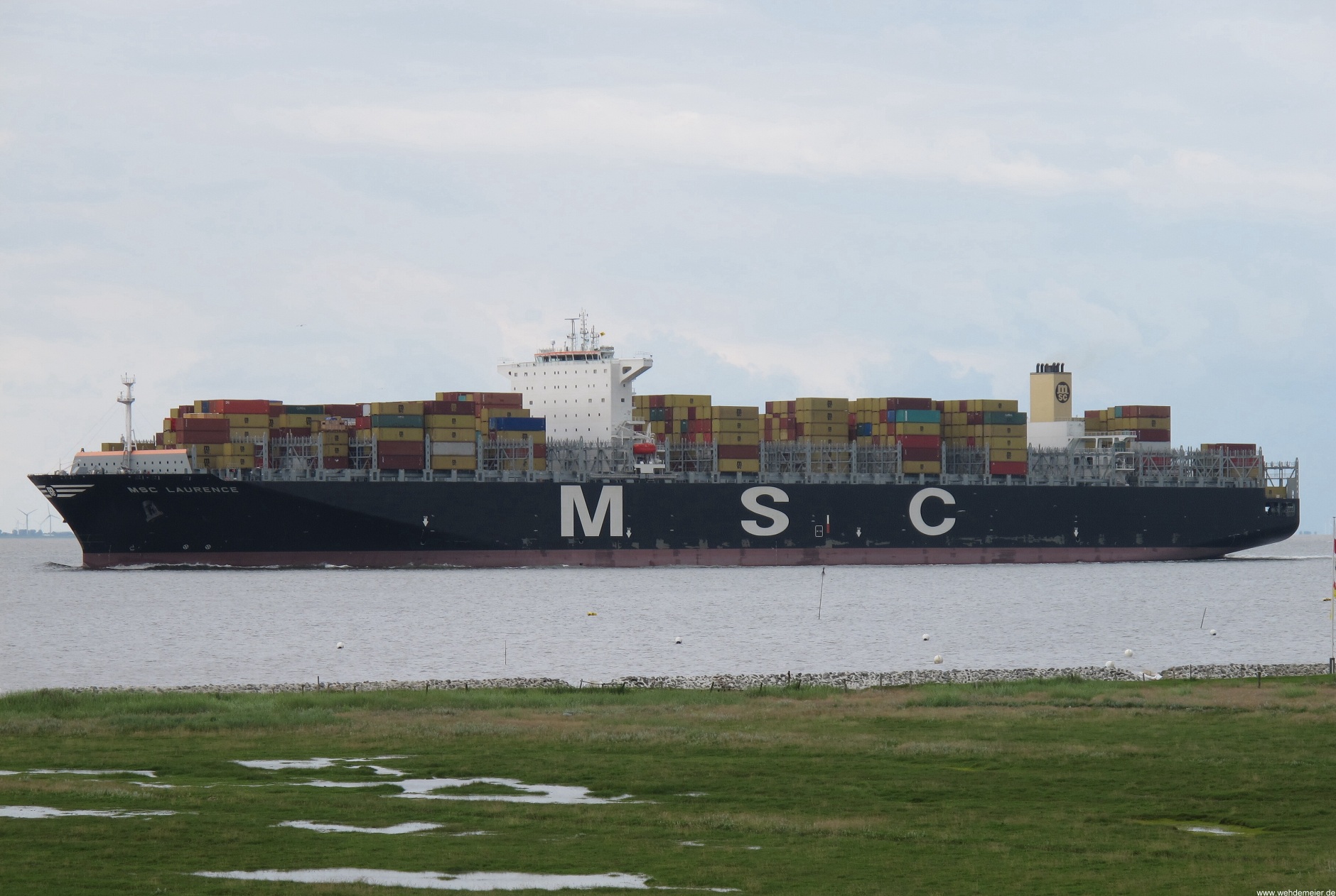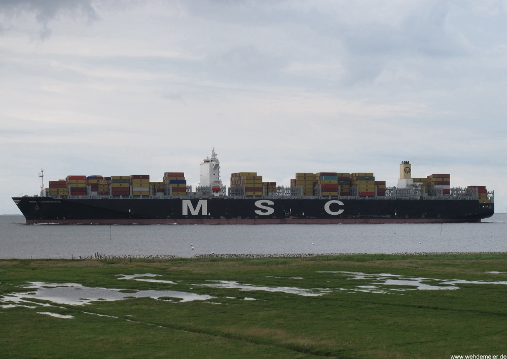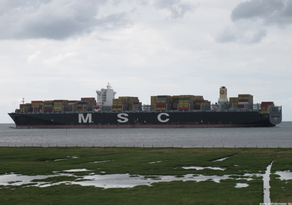 Containerschiff elbabwärts vor Cuxhaven-Altenbruch am 18.06.2011