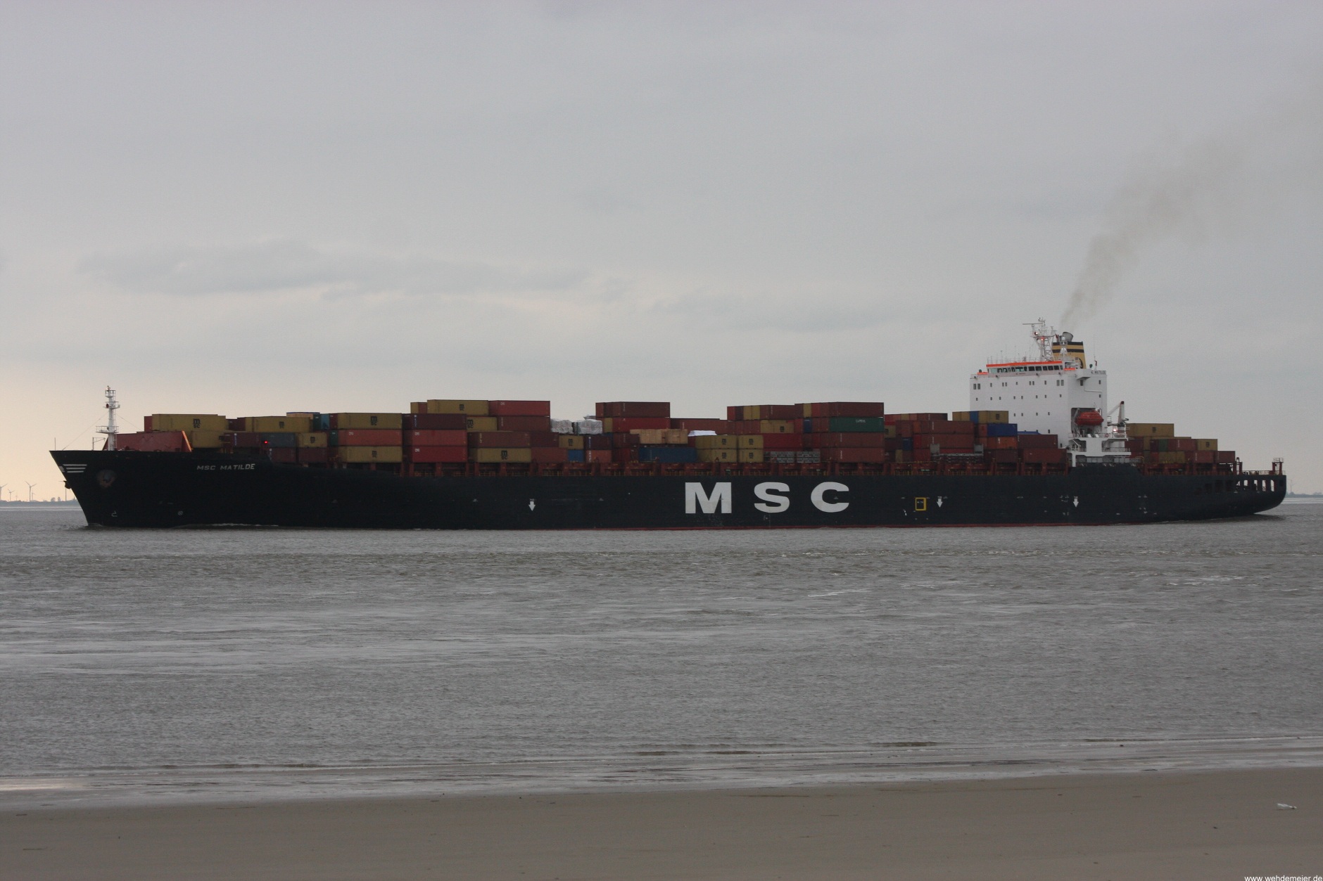 Containerschiff elbabwärts in Höhe Glameyer Stack am 11.05.2010