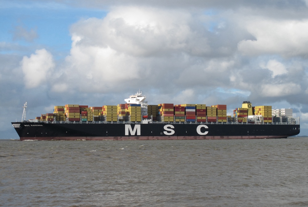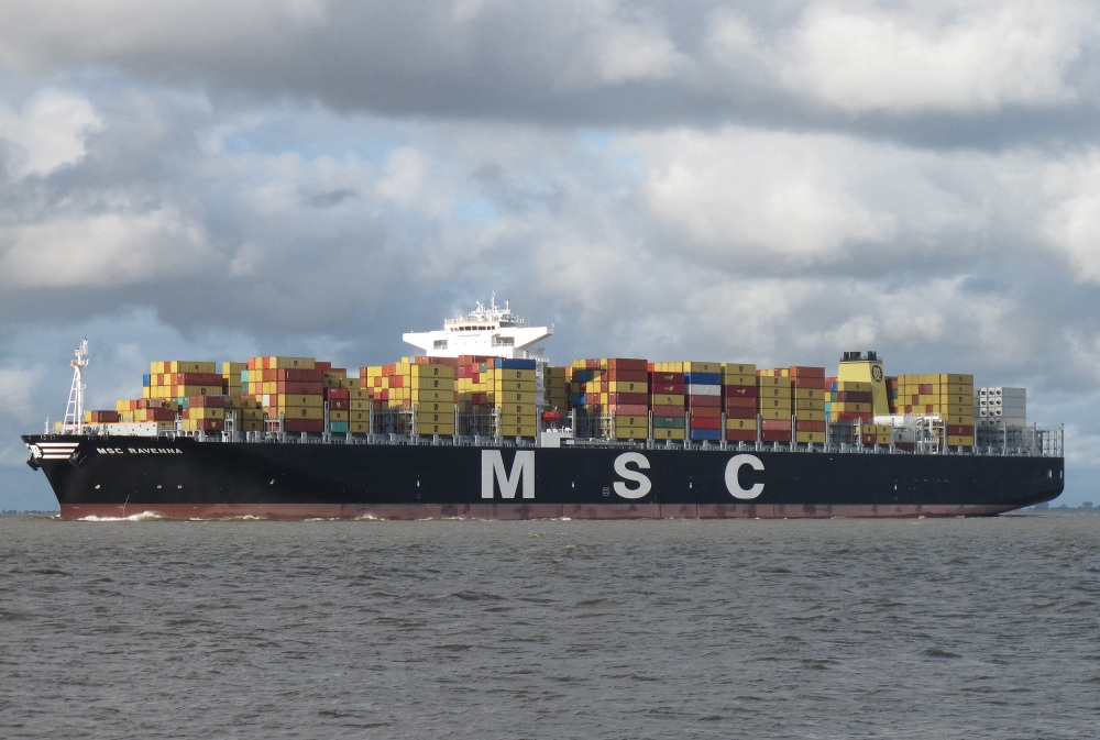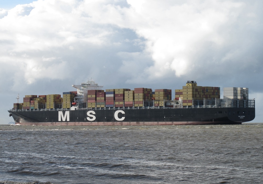 Containerschiff elbabwärts vor Cuxhaven-Altenbruch am 31.08.2011