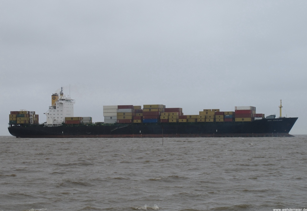 Containerschiff elbaufwärts vor Cuxhaven-Altenbruch am 03.07.2011