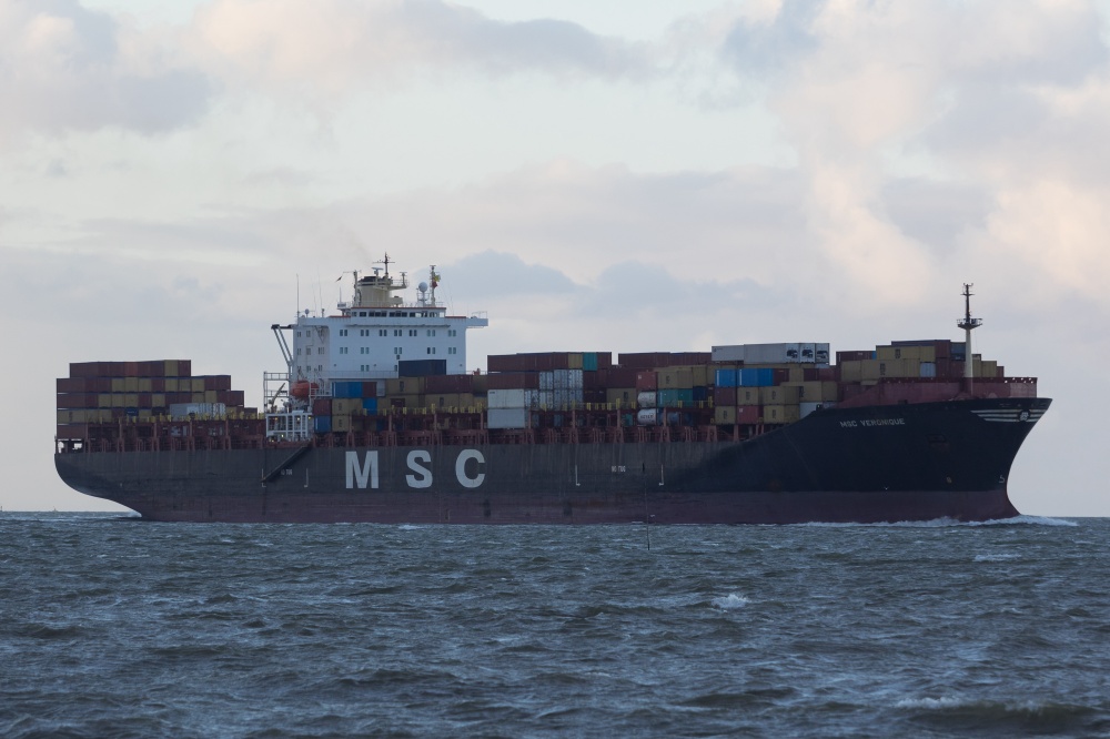 Containerschiff elbaufwärts vor Cuxhaven-Altenbruch am 01.11.2016