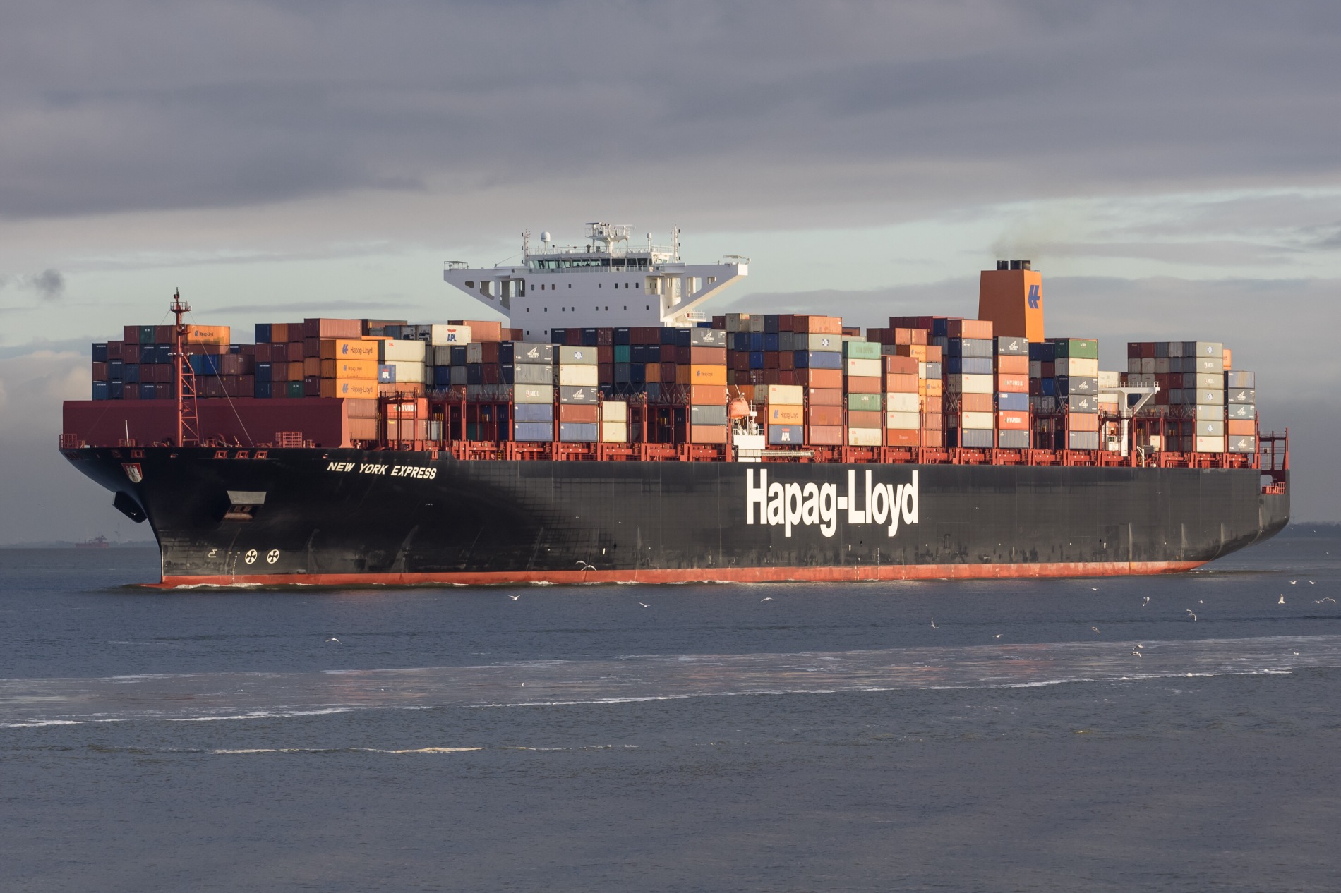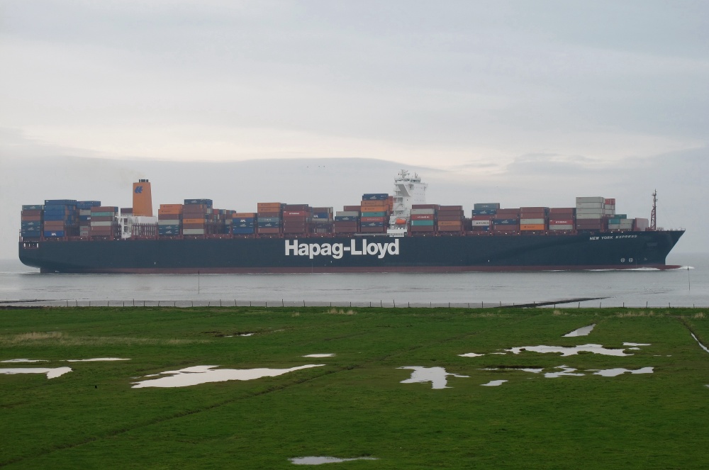 Containerschiff elbabwärts vor Cuxhaven am 25.11.2015