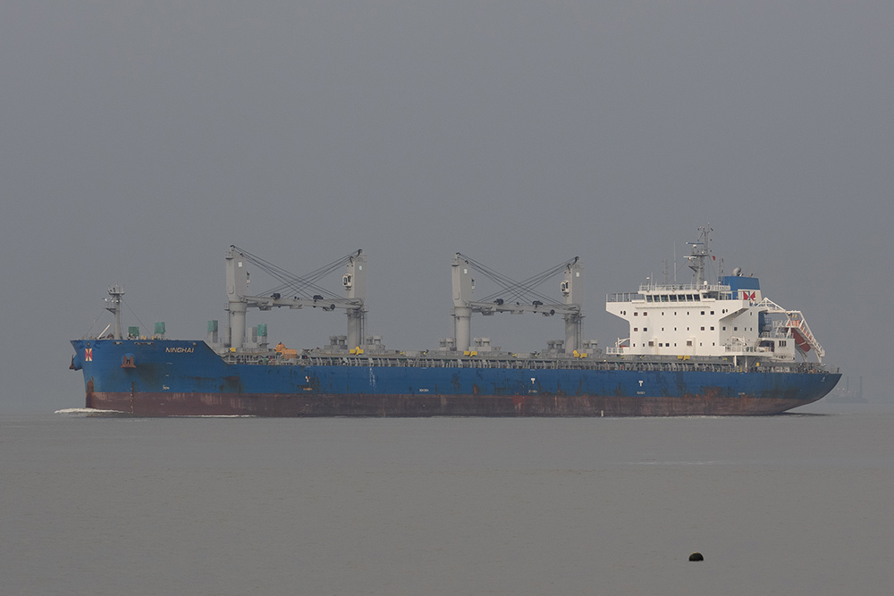 Frachtschiff elbabwärts vor Cuxhaven-Altenbruch am 29.04.2020