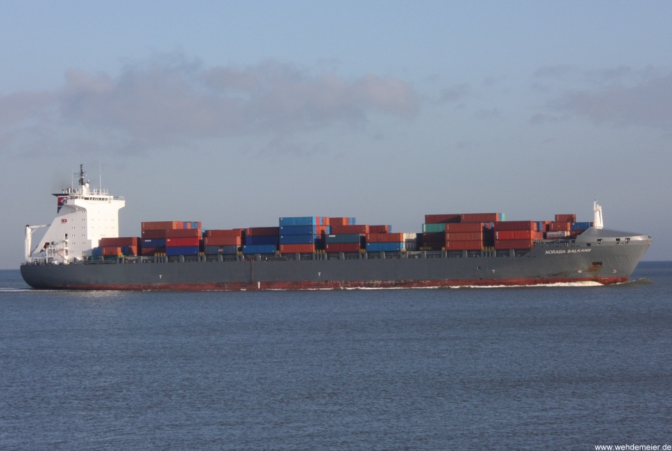Containerschiff elbaufwärts vor Cuxhaven-Groden am 08.02.2009