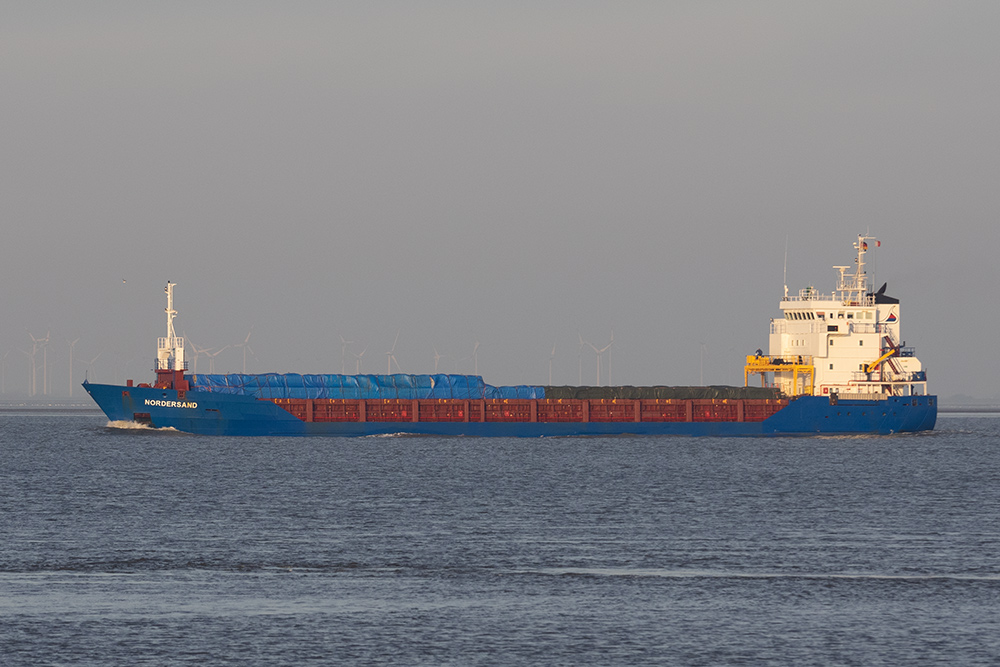 Frachtschiff elbabwärts vor Cuxhaven-Altenbruch am 25.11.2020