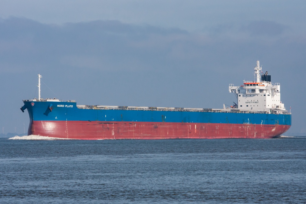 Massengutfrachter elbabwärts in Höhe Glameyer Stack am 02.10.2015