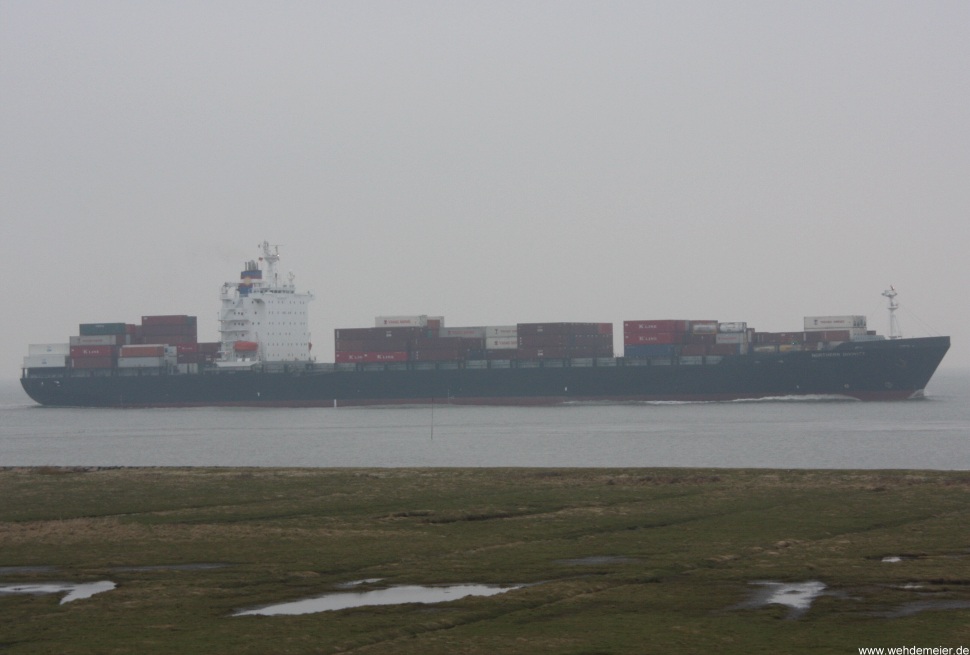 Containerschiff elbaufwärts vor Cuxhaven-Altenbruch am 17.01.2009