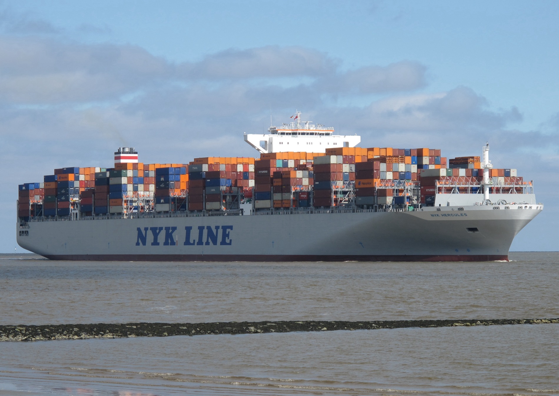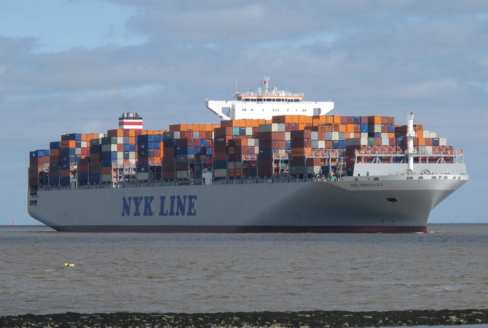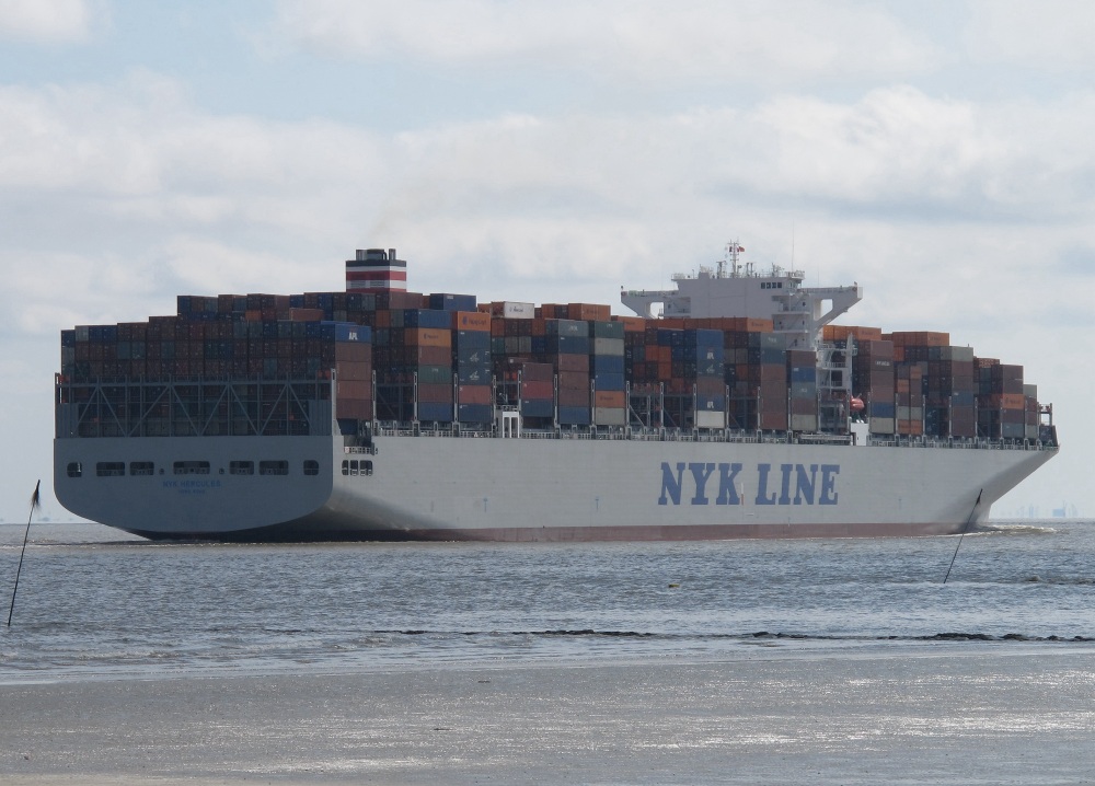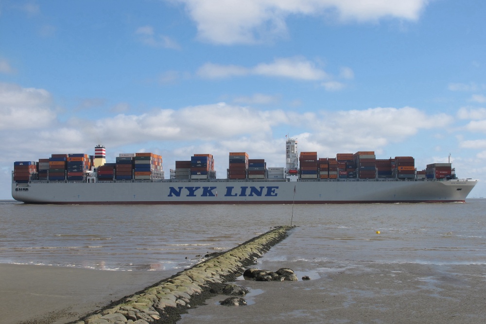 Containerschiff elbaufwärts vor Cuxhaven-Altenbruch am 08.06.2013