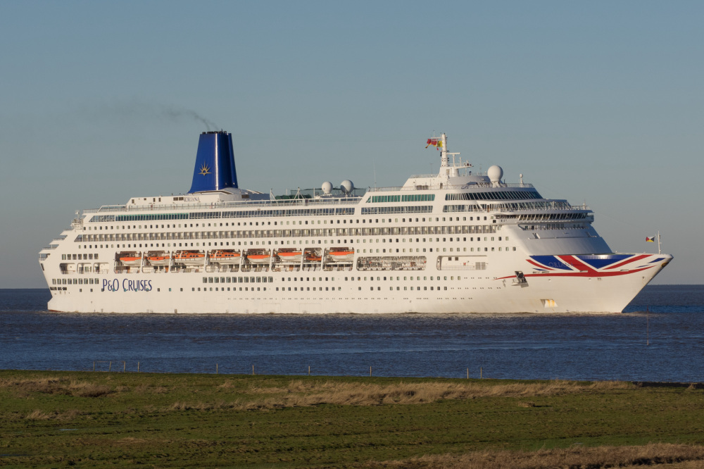 Passagierschiff elbaufwärts vor Cuxhaven-Altenbruch am 07.01.2018