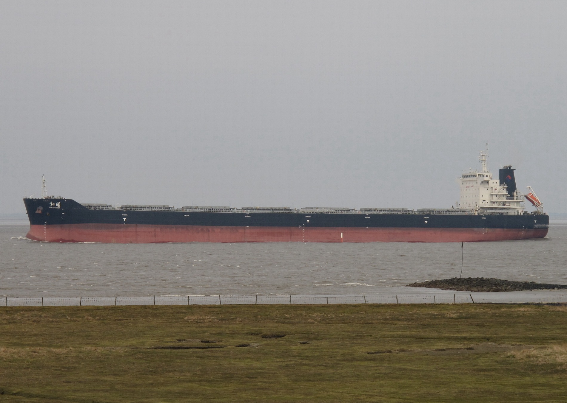 Frachtschiff elbabwärts vor Cuxhaven-Altenbruch am 08.03.2013