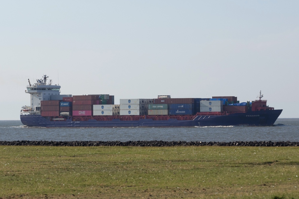Frachtschiff elbaufwärts vor Cuxhaven-Altenbruch am 24.07.2018
