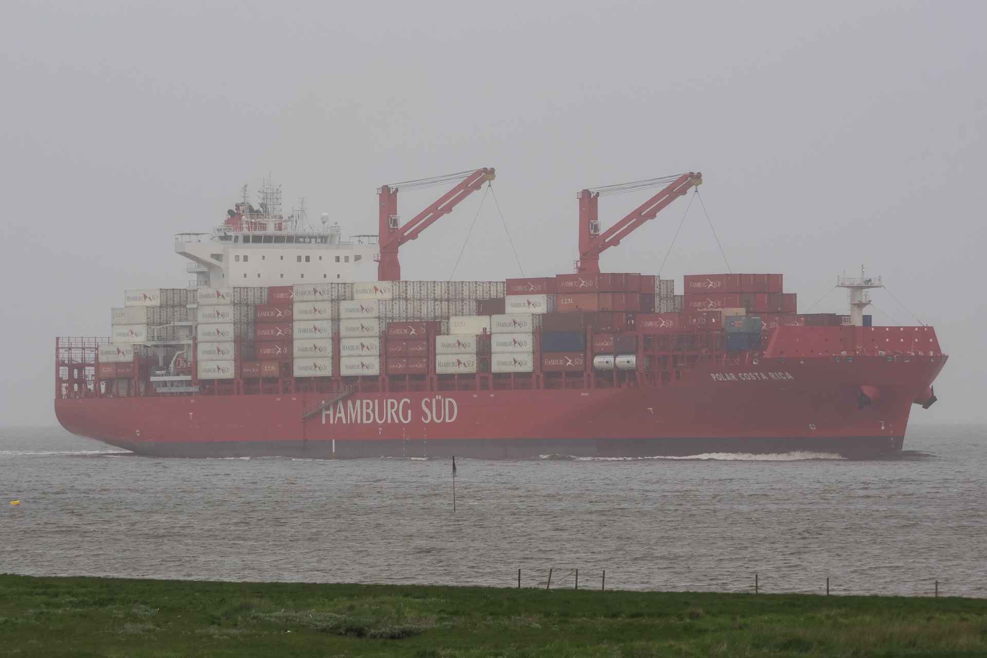 Containerschiff elbaufwärts vor Cuxhaven-Altenbruch am 17.05.2018