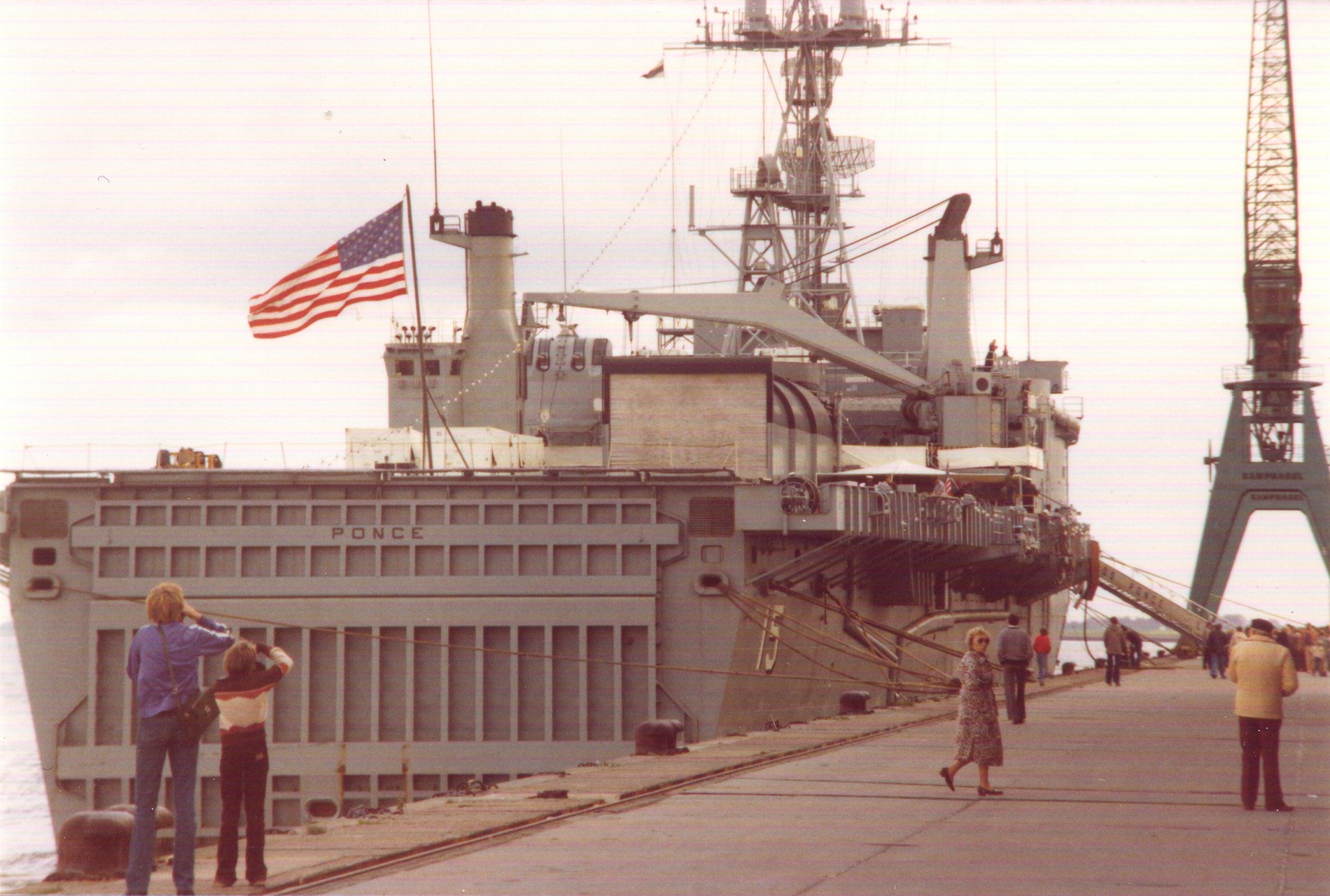 Amphibien-Transportschiff der United States Navy am Steubenhöft in Cuxhaven im Februar 1981