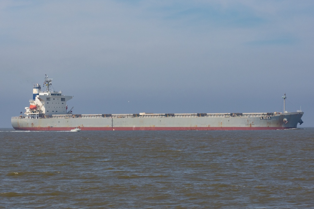 Massengutfrachter elbaufwärts in Höhe Glameyer Stack am 24.07.2016