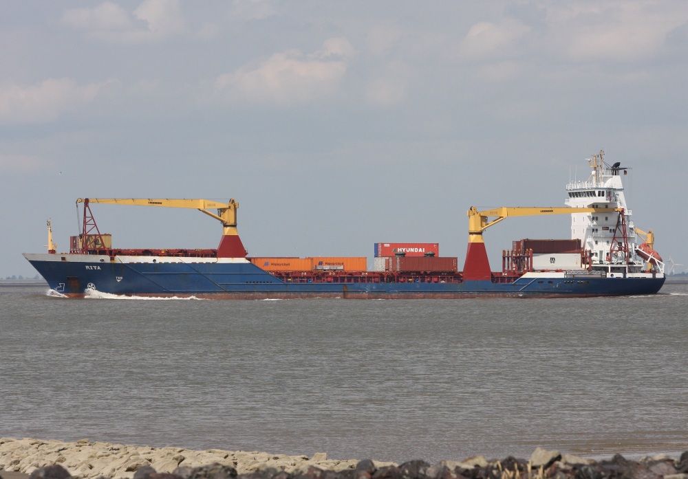 Frachtschiff elbabwärts vor Cuxhaven-Altenbruch am 06.07.2014