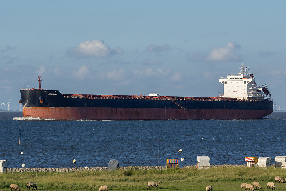 Massengutfrachter elbabwärts vor Cuxhaven-Altenbruch am 26.07.2020