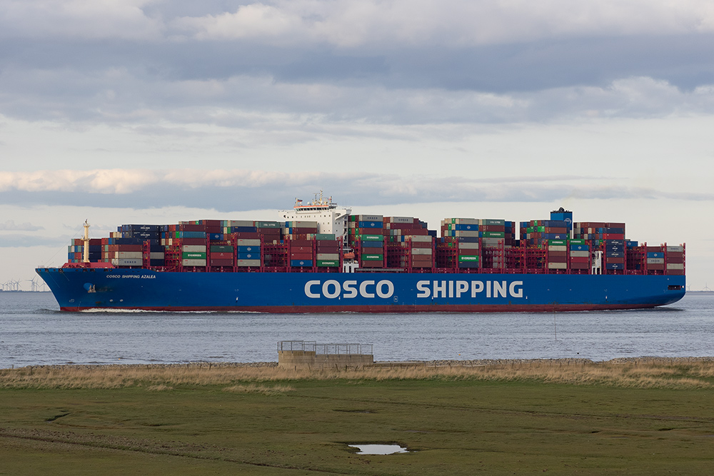 Containerschiff elbabwärts vor Cuxhaven-Altenbruch am 15.04.2021
