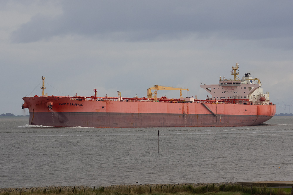 Tanker elbabwärts vor Cuxhaven-Altenbruch am 16.10.2021