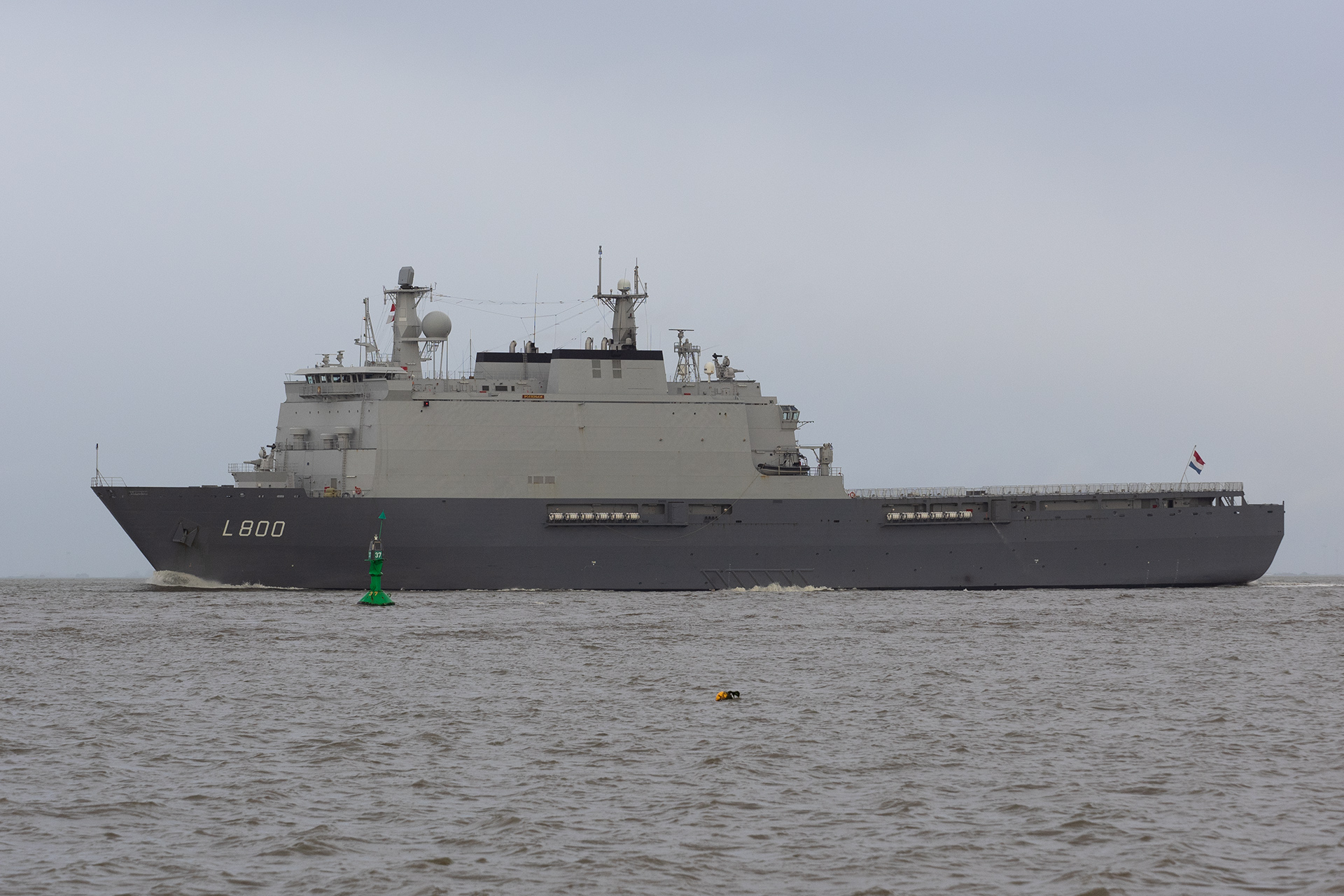 Niederländisches Militärschiff elbabwärts vor Cuxhaven-Altenbruch am 08.11.2021