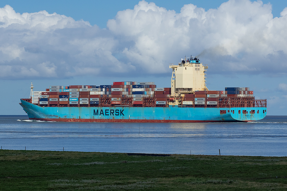 Containerschiff elbabwärts vor Cuxhaven-Altenbruch am 06.09.2025