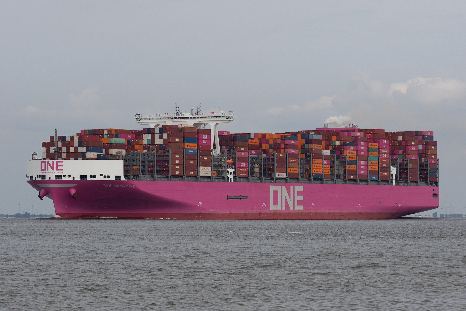 Containerschiff elbabwärts in Höhe Glameyer Stack am 18.08.2024