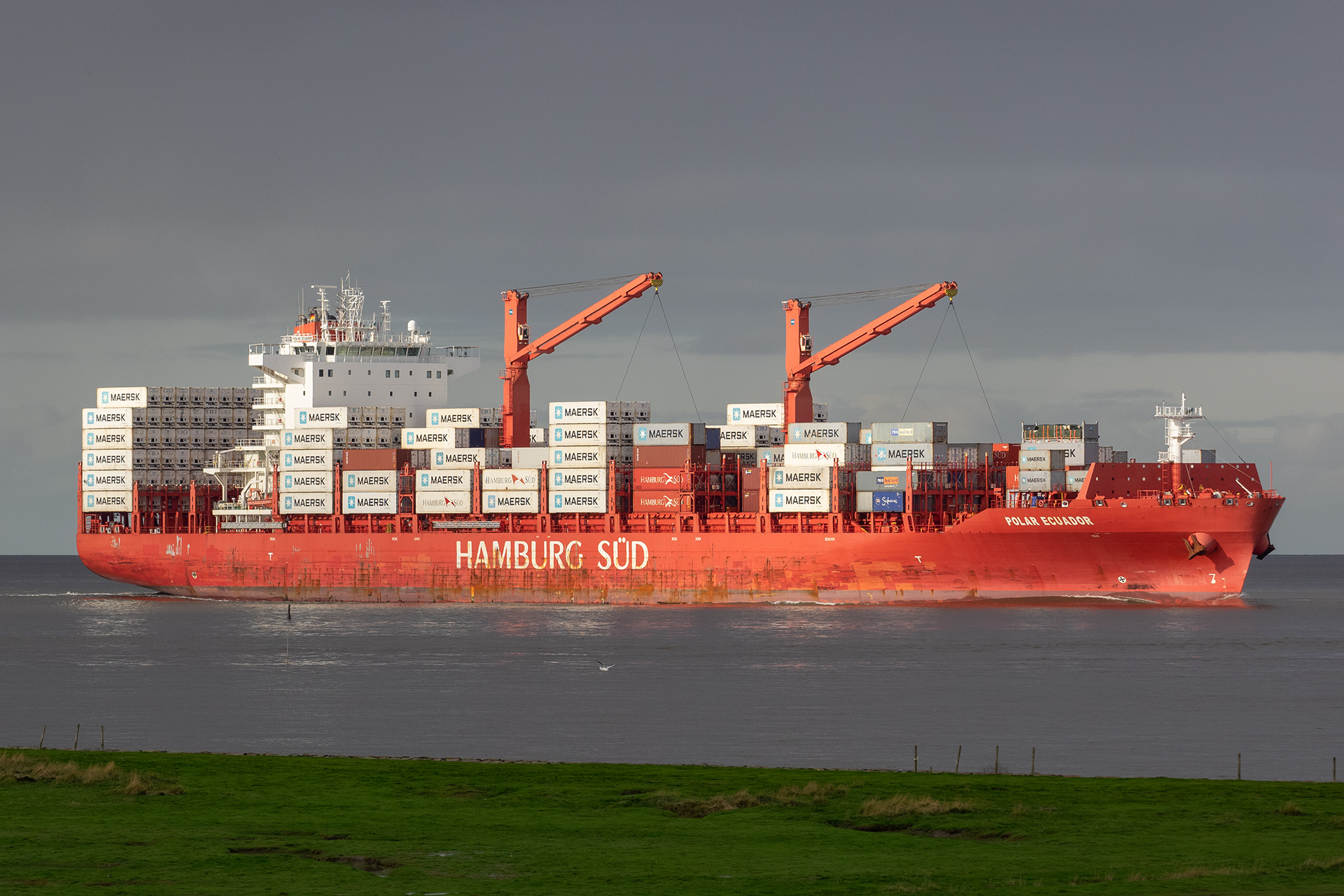 Containerschiff elbaufwärts vor Cuxhaven-Altenbruch am 23.10.2020