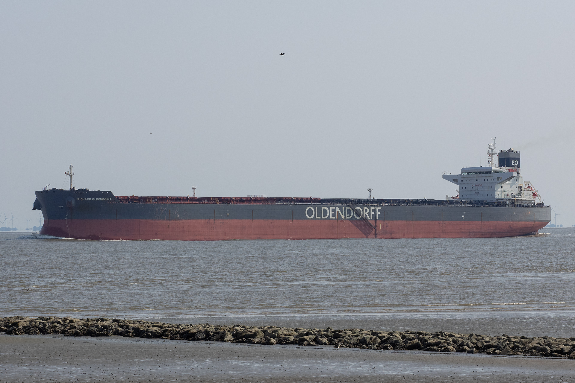 Massengutfrachter elbabwärts vor Cuxhaven-Altenbruch am 11.07.2021