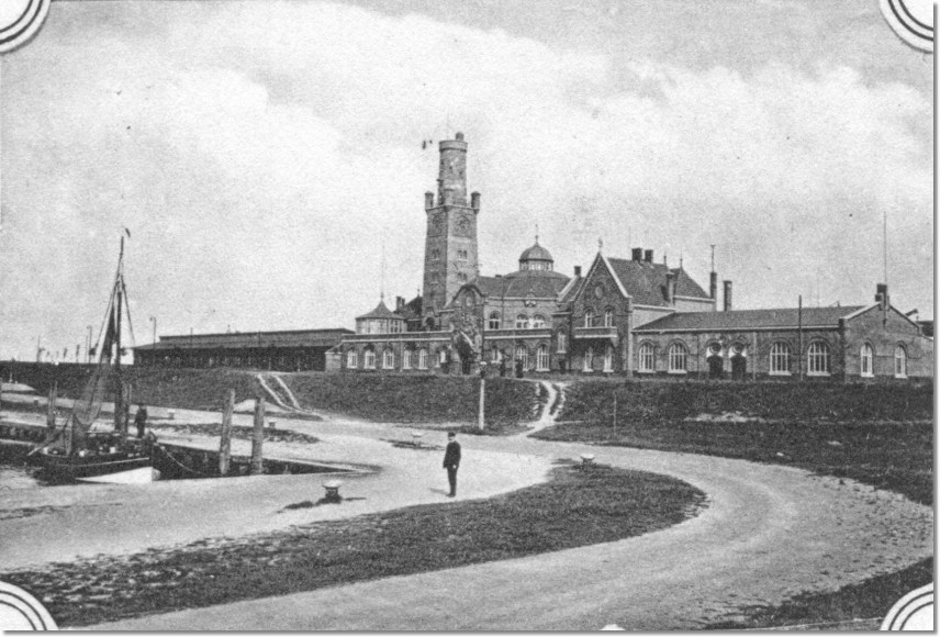 Postkarte (1905) mit Eingang zu den ehemaligen Passagierhallen beim Steubenhöft.
